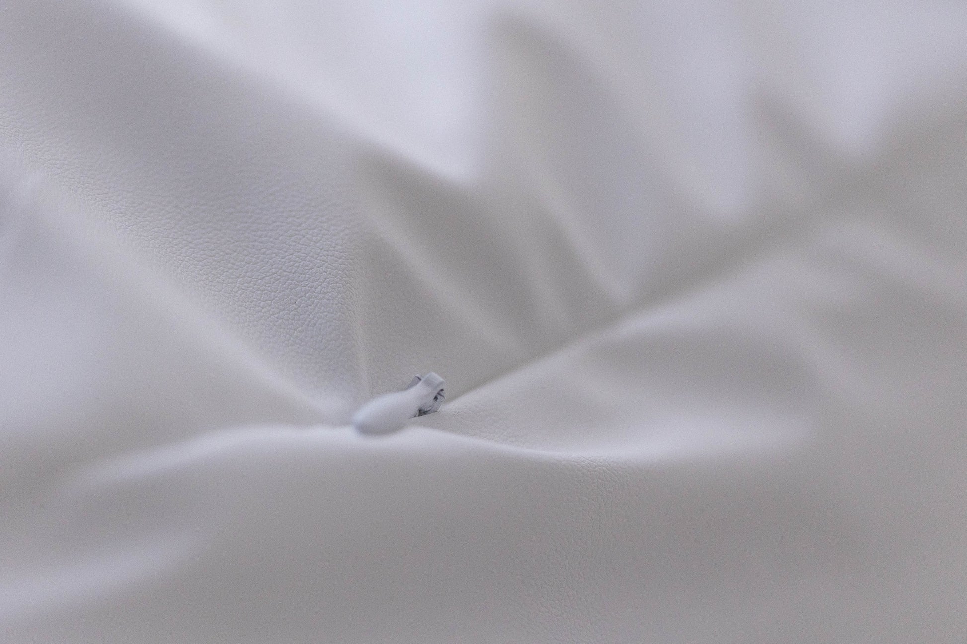 Questo morbido pouf in ecopelle bianca è ideale per posizionare i vostri neonati in studio.